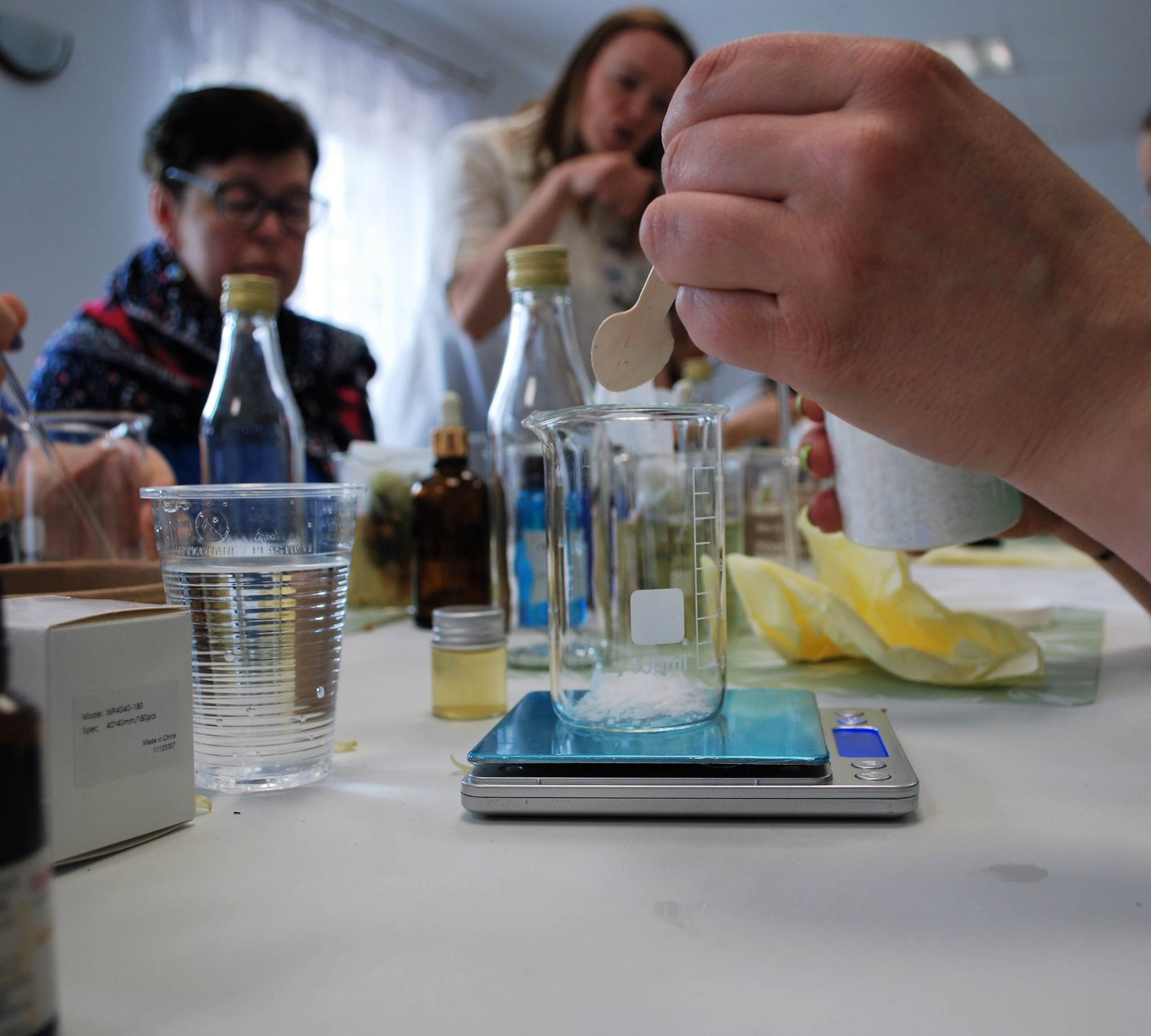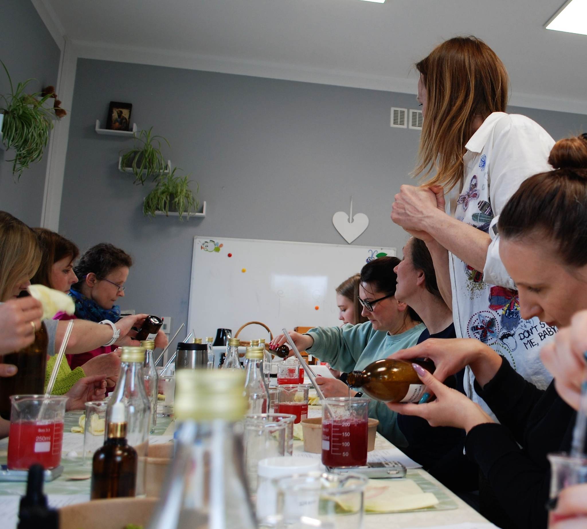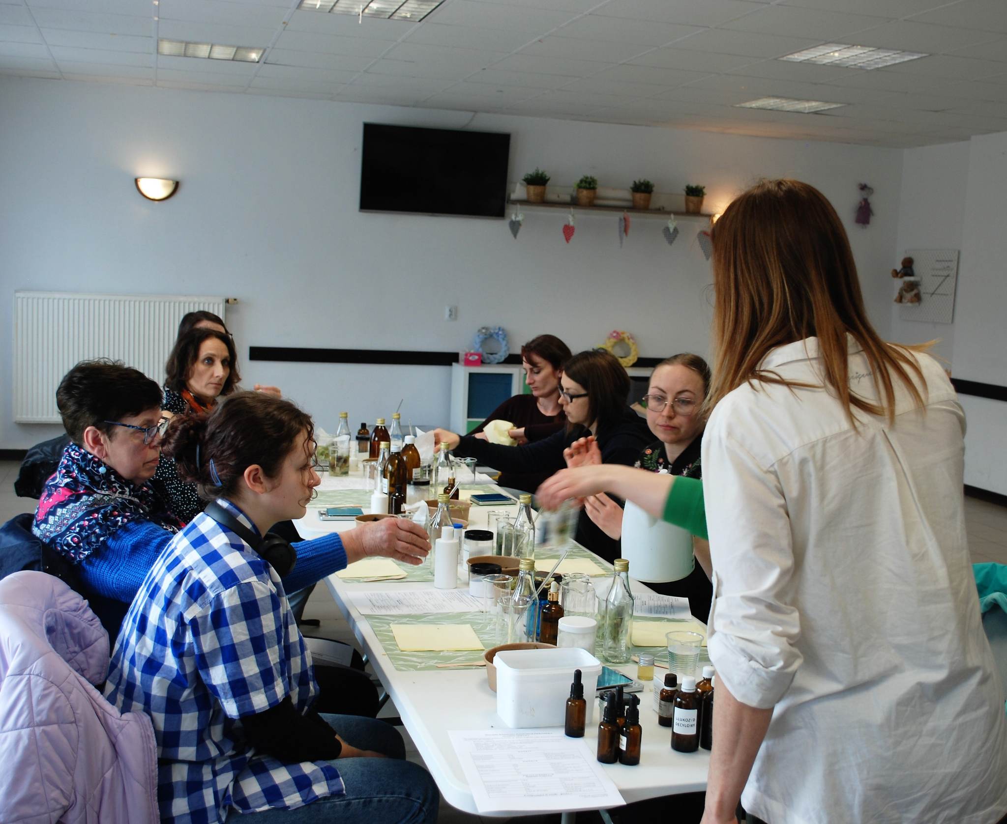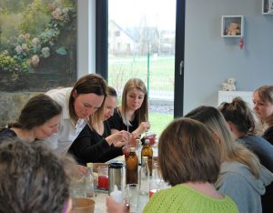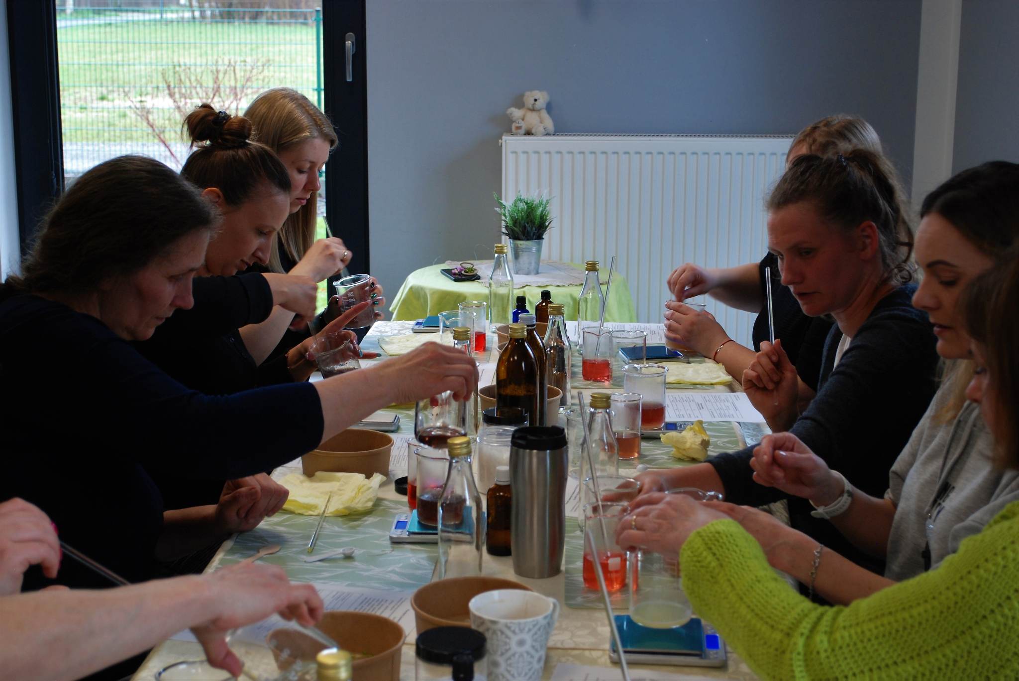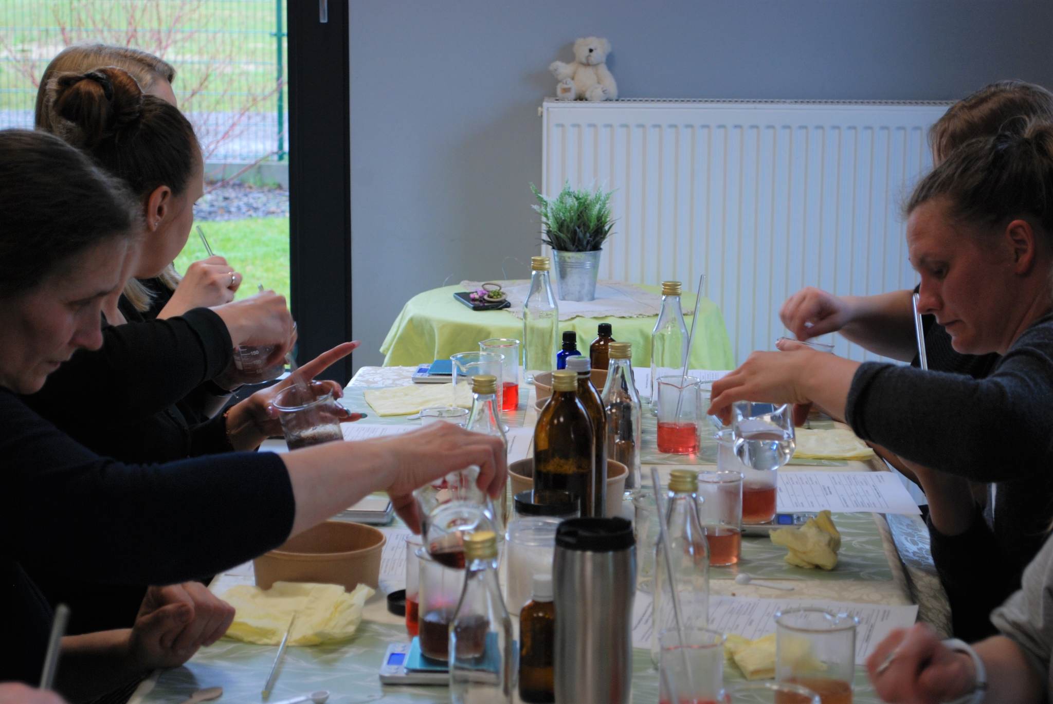Dziś miałam przyjemność poprowadzić warsztaty kosmetyków botanicznych w Świetlicy w Szczęsnem i w Kadach. Znaczna część Pań to stałe bywalczynie na moich zajęciach, robiły juz ze mną nie jeden kosmetyk. Paca z nimi idzie sprawnie a ja dzięki temu mogę przygotowywać coraz bardziej złożone receptury.Tym razem robiłyśmy szampony botaniczne z szyszek chmielu, kwiatu lipy i klonu w pięknych odcieniach różu dzięki kwiatom czarnej malwy.