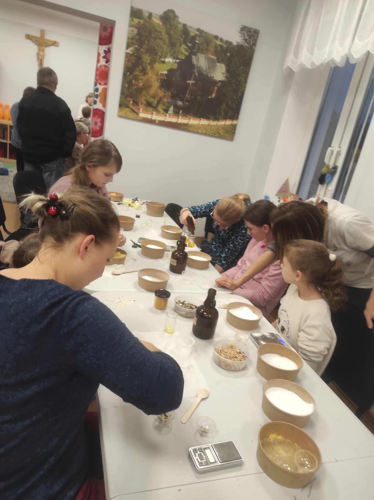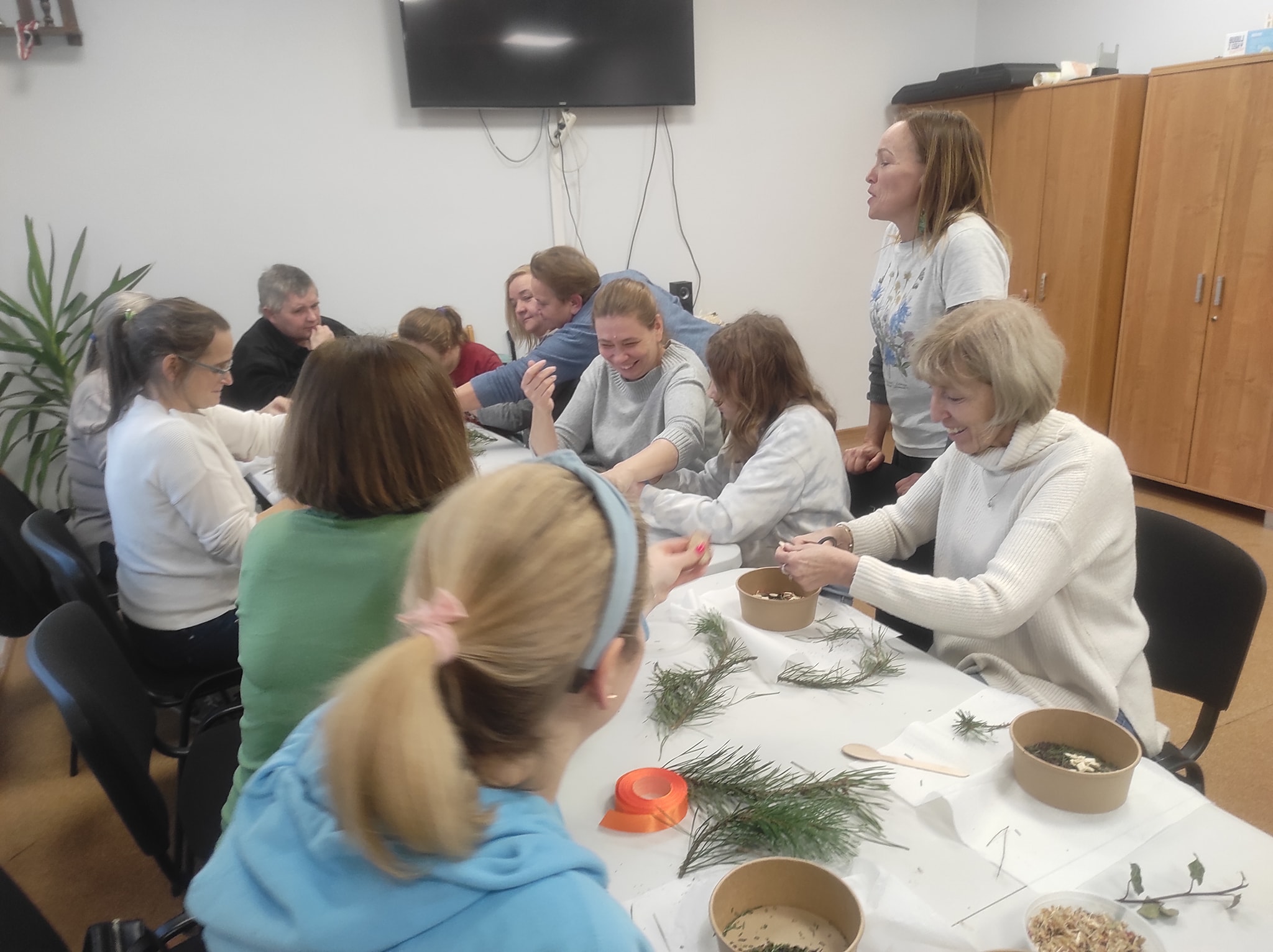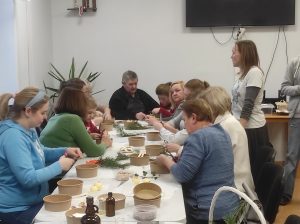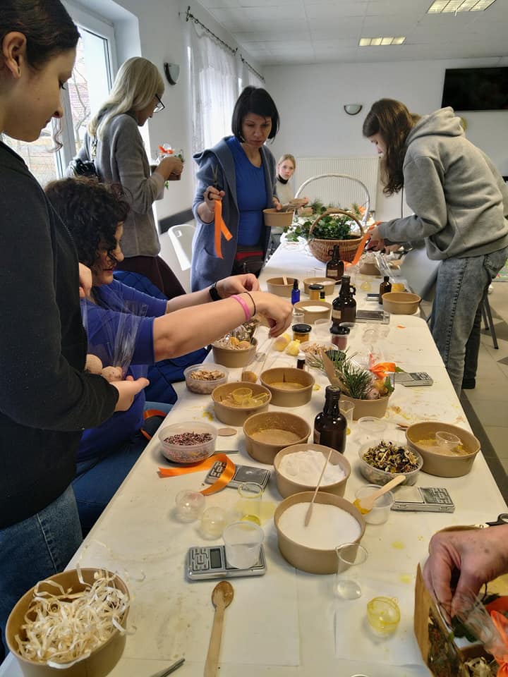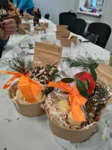 Dziś odwiedziłam świetlice w Kadach i Żukowie. Uczestnicy warsztatów zrobili nagietkowe kule do kąpieli oraz zimową herbatę. Suszone igły sosny, suszone jabłka i owoce jarzębiny oraz przeprawy korzenne są pełne witamin i mikroelementów oraz prozdrowotnych właściwości. Taka własnoręcznie zrobiona herbata jest nie tylko piękna ale i zdrowa. Robienie kul to świetna zabawa zarówno dla dorosłych jak i dla dzieci, bywają kapryśne i nie zawsze wychodzą. Wszystkim uczestnikom się udało stworzyć estetyczny i wartościowy kosmetyk który zapakowany w raz zimowa herbatą stanowi atrakcyjny zestaw podarunkowy. Mnie bardzo cieszy fakt ze moje kursantki same zbierają rośliny i stosują je w swojej kuchni i kosmetyce.